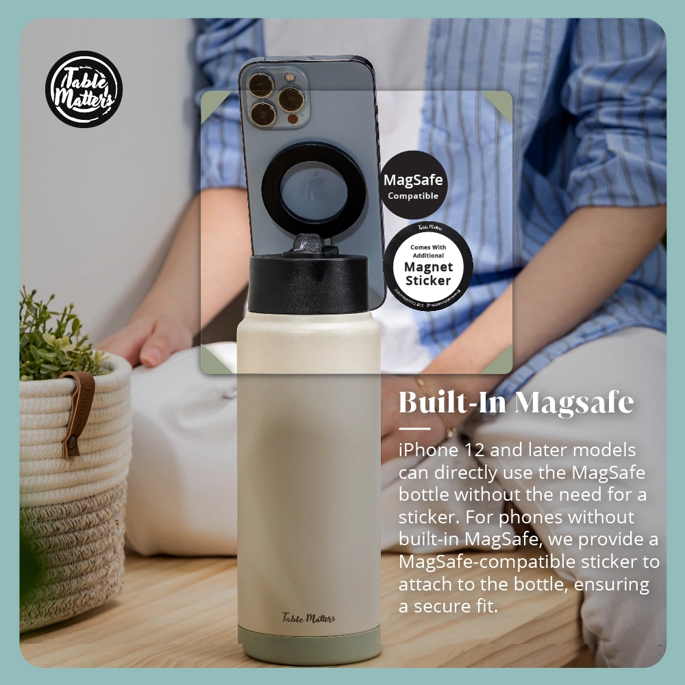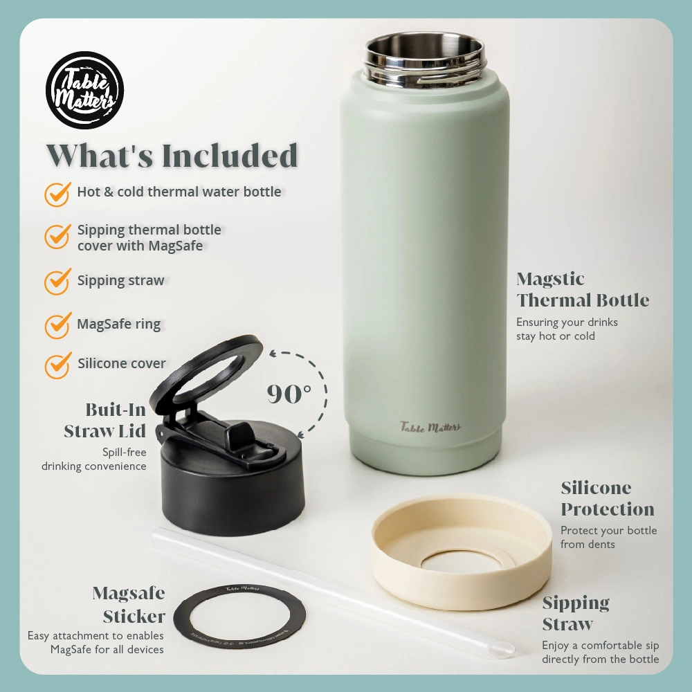 MAGSTIC - 24oz/700ml iPhone Magsafe Compatible Thermal Water Bottle with Sipping Straw Collection