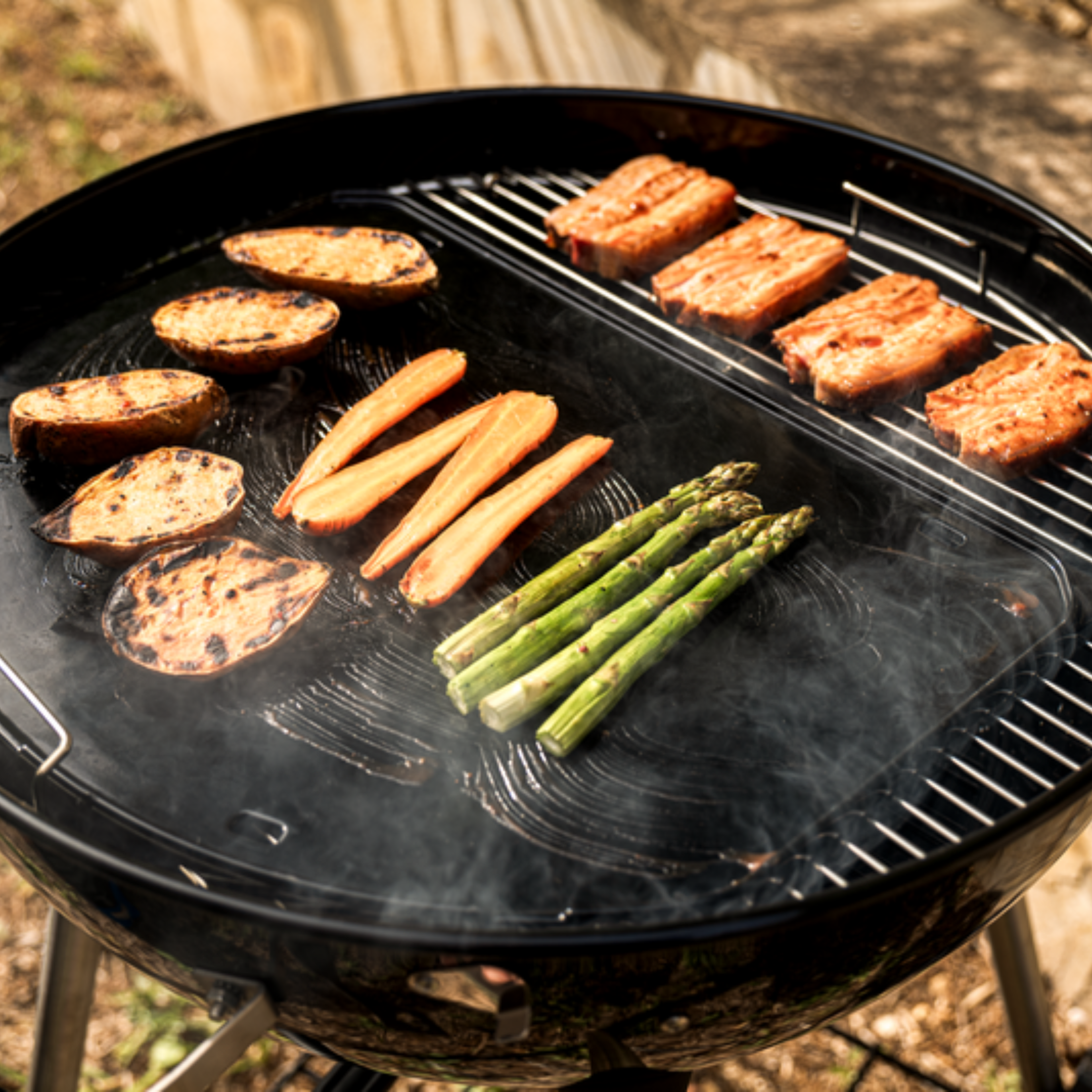 Ideal for charcoal enthusiasts. experience charcoal grilling with Napoleon’s compact and mobile Charcoal Kettle Grill. This grill can easily follow you to wherever the action is thanks to the sturdy all-weather wheels. Grilling. roasting. and smoking are a breeze. the hinged grids make it easy to reload charcoal or add wood for smoking. Charcoal is all about controlling heat and airflow. the stainless steel heat diffuser evenly distributes heat. and directs spent charcoal to the ash catcher. The improved PRO Air Control system increases airflow and temperature accuracy while preventing water from entering the grill. The lid features a built-in lid hanger and cool touch handle to keep your hands away from the heat while grilling.
