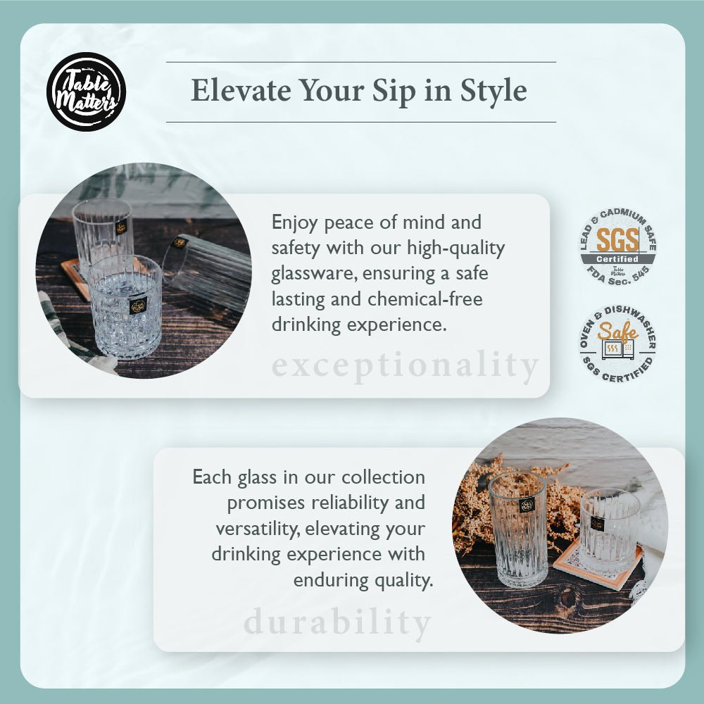 Crafted from superior. lead-free crystal. the TAIKYU Glass is more than a vessel—it is a safe and radiant choice for savouring your beloved beverages with peace of mind. Experience a seamless blend of durability with a dash of sustainability. promising you a glass that isn’t just another addition but a long-standing companion to your cherished moments.