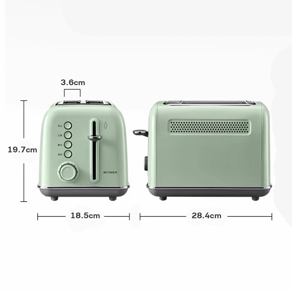 Enjoying your morning routine starts with the Buydeem. Made to bring happiness to your kitchen with no more burnt or wasted toast. the dual sides and 7 shade settings along with bread. bagel. or English muffin modes make all the difference. The true bagel mode heats up both sides of the bagel initially. then toasts just the cut sides. The bread slice mode toasts evening within 3 minutes. Finally. the English Muffin mode carefully heats both sides with delicate. perfectly timed care. No one loves struggling to set up a toaster first thing in the morning. instead the vintage style of this machine makes a great countertop accessory. For easy cleaning. the removable. dual. crumb trays slide out from the behind. The extra-long 40-inch cord and storage area allows you to place this toaster and use it anywhere.