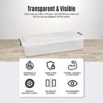 Now. spotlight the HOUZE – 35L/45L ‘LOW PROFILE’ FlipEase Underbed Storage with Wheels (Clear). Engineered to perfection. this piece is odourless. non-toxic and crafted from 100% virgin material. ensuring safety and durability. Its transparent body. complemented by sleek black handles and wheels. is not just a design choice but a reflection of its commitment to seamlessly blending into your home or office.
