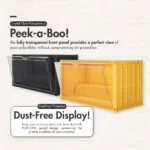 The HOUZE POPCON Popmart Container Display Storage Box with Shelf is the ideal choice for collectors who want to present their treasured items in a sleek. organized. and protective display. Whether you’re a seasoned collector or just starting out. this display box helps you create a stunning showcase that highlights your collection in a professional and elegant manner.