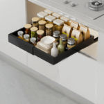 Turn your shelf into a compact organised system with Table Matter’s Slidey Width Extendable Pull Out Cabinet Tray Collection!