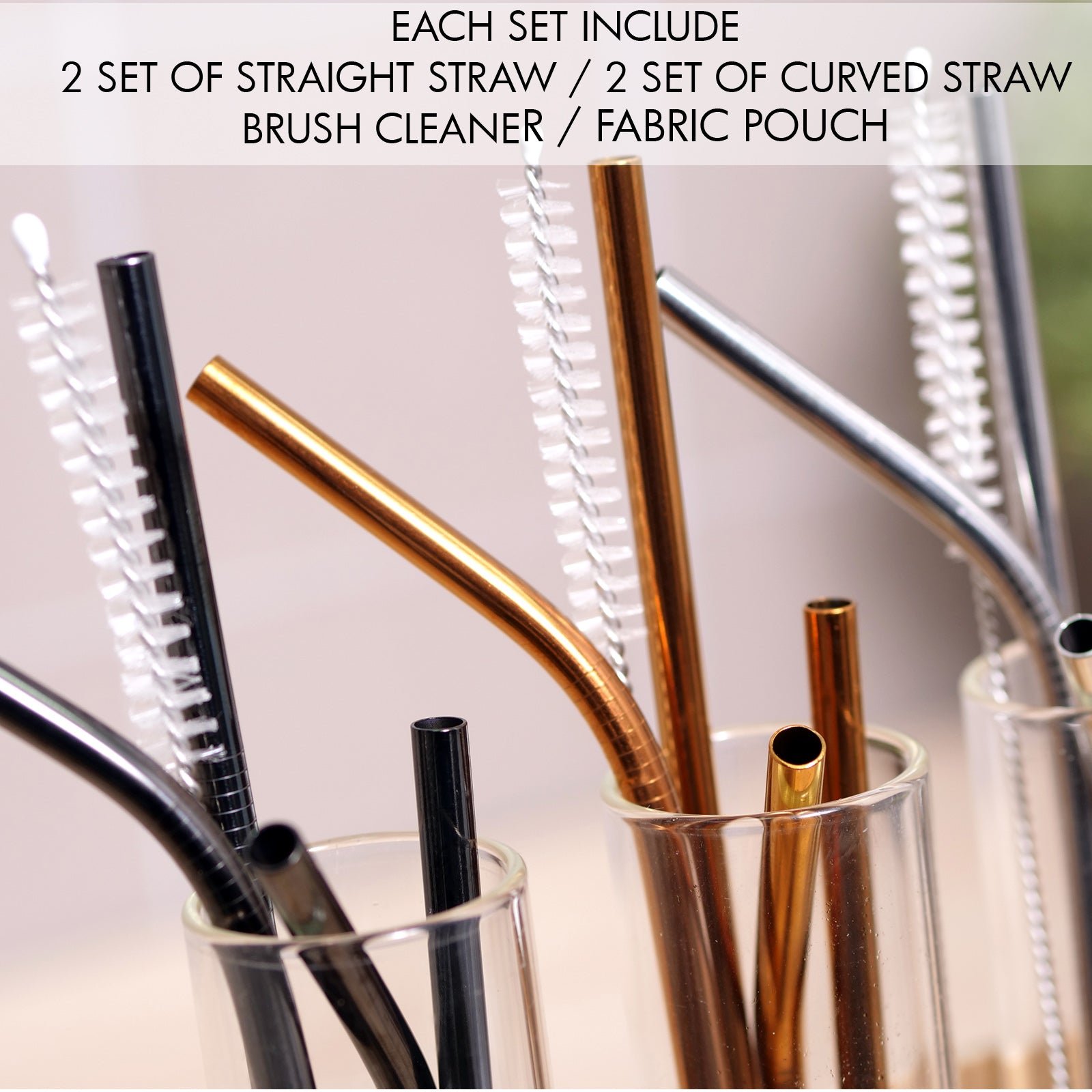 Stainless Steel Straw Set of 4 (Rose Gold)